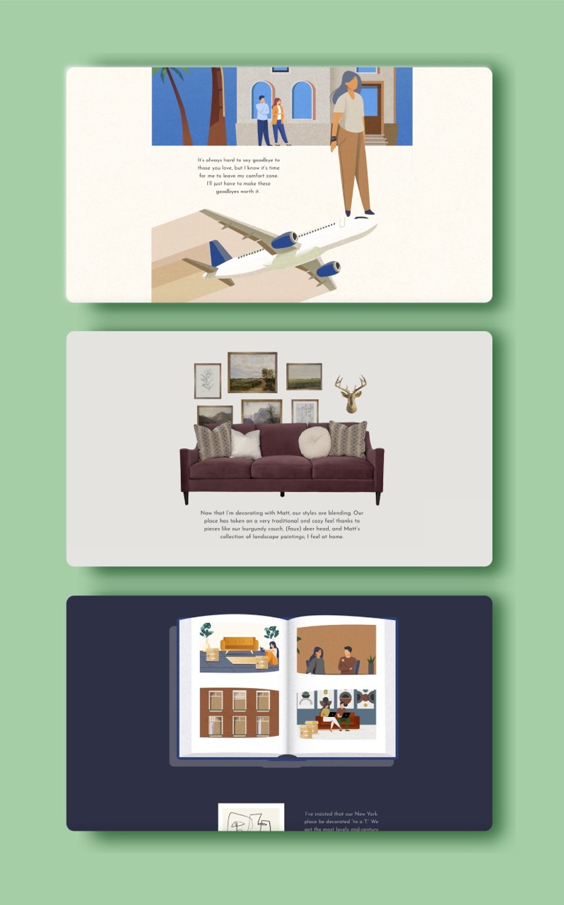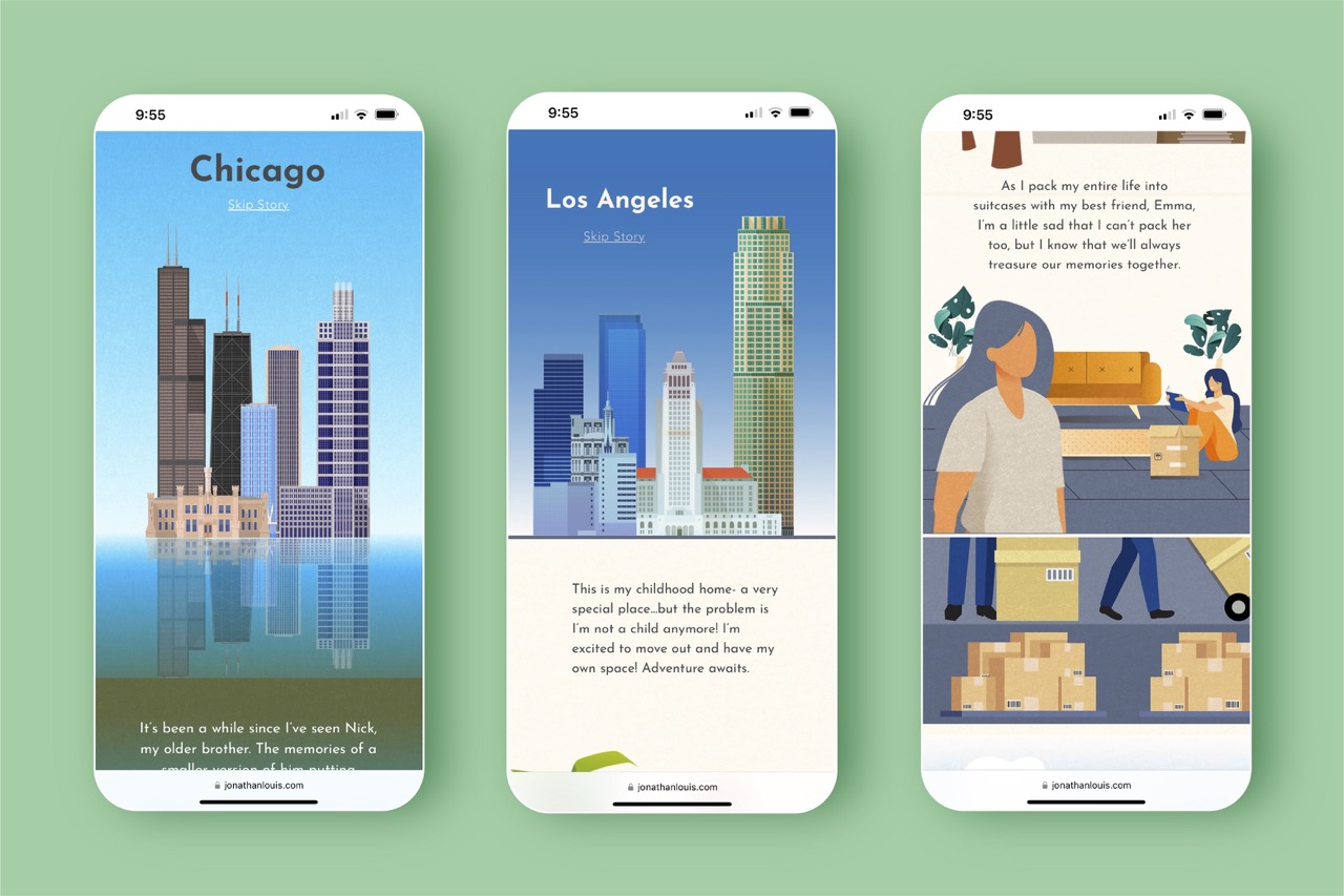 In 2023, Jonathan Louis hired us to create a mobile-first website that turns a furniture showroom into a multimedia experience through QR codes in each room. As the user walked through the physical space, a digital story about a woman’s evolving sense of style unfolds, incorporating the spaces and furniture pieces into the narrative. This complex project required copywriting, illustration, and web design to harmonize together in one multimedia experience.